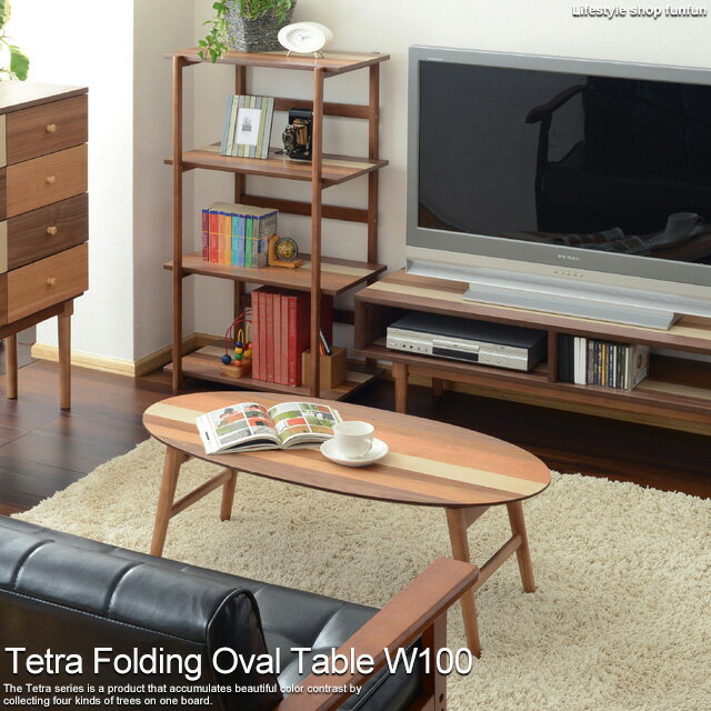テーブル 折りたたみテーブル センターテーブル Tetra テトラ 幅100cm 折り畳み 座卓 ちゃぶ台 おりたたみ おしゃれ 西海岸 かわいい オーバル 丸型 丸形 ローテーブル リビングテーブル 新生活 在宅勤務 テレワーク 送料無料【着後レビューで扇風機】